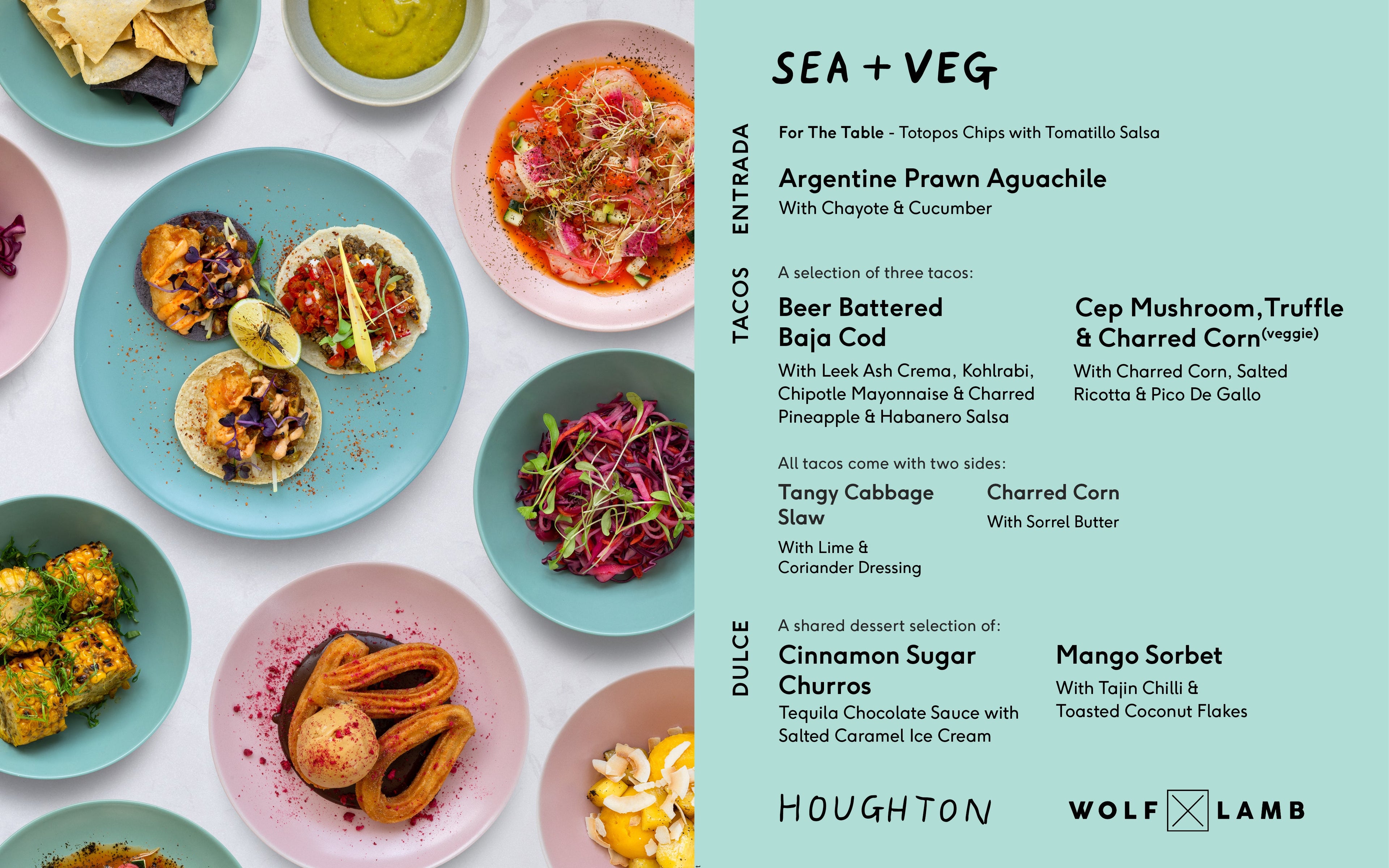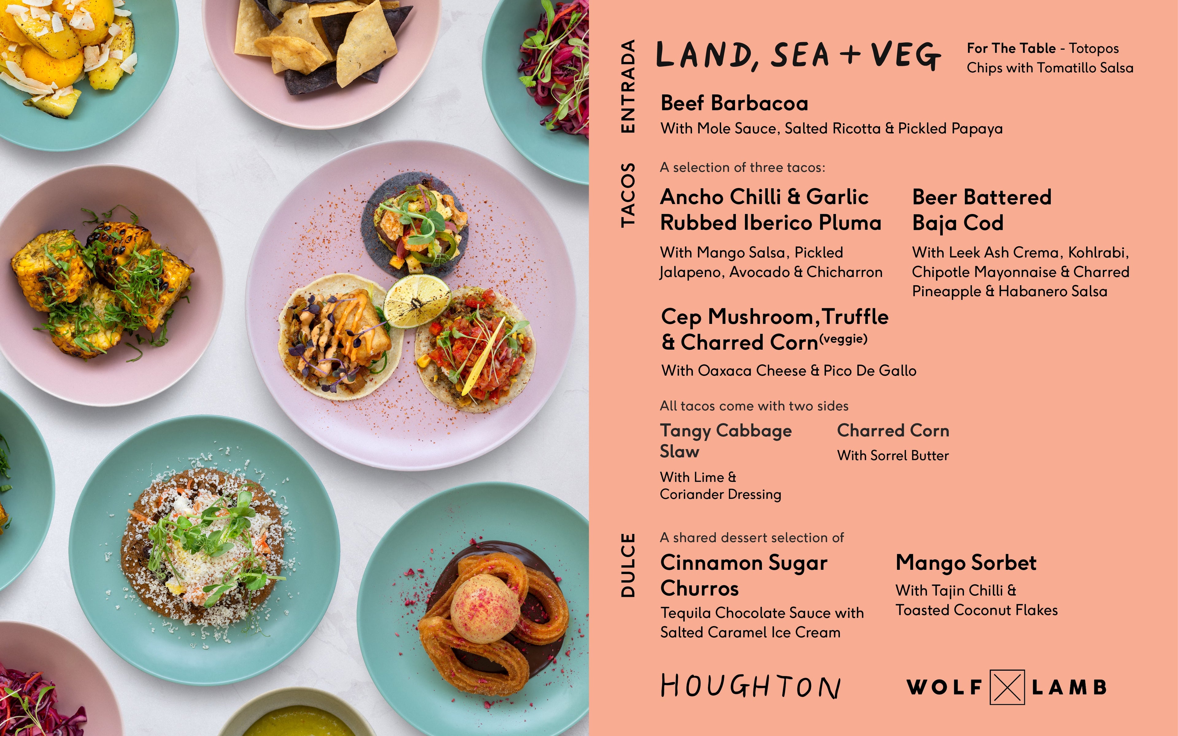 Our Mexican-inspired menus celebrate the diversity of this vibrant cuisine and are crafted around four core dietary styles, using the freshest ingredients from the LAND (meat eaters), SEA (pescatarians), VEG (vegetarians), and PLANT (vegans).